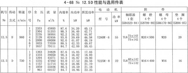 4、周口4-68離心風機性能與選用件表